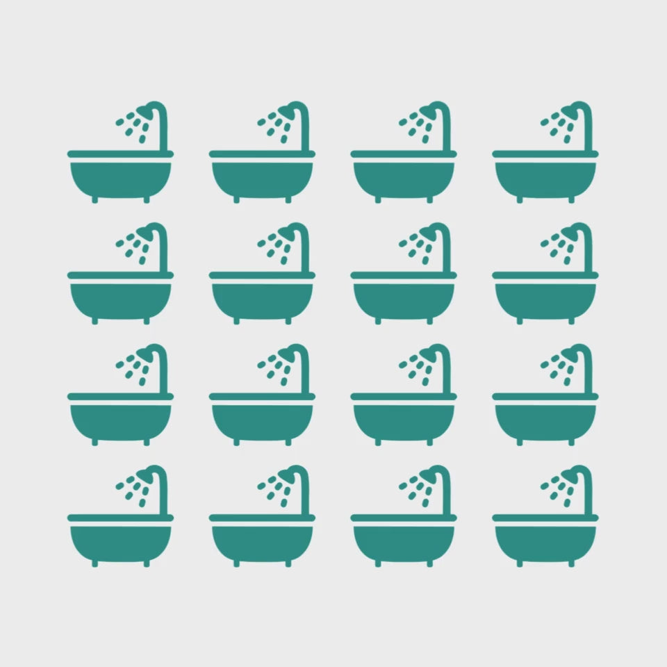 Pour une famille de 4 personnes, cela représente plus de 500 baignoires par an et une très grande économie d’eau et d’énergie par an comparativement aux douches classiques.